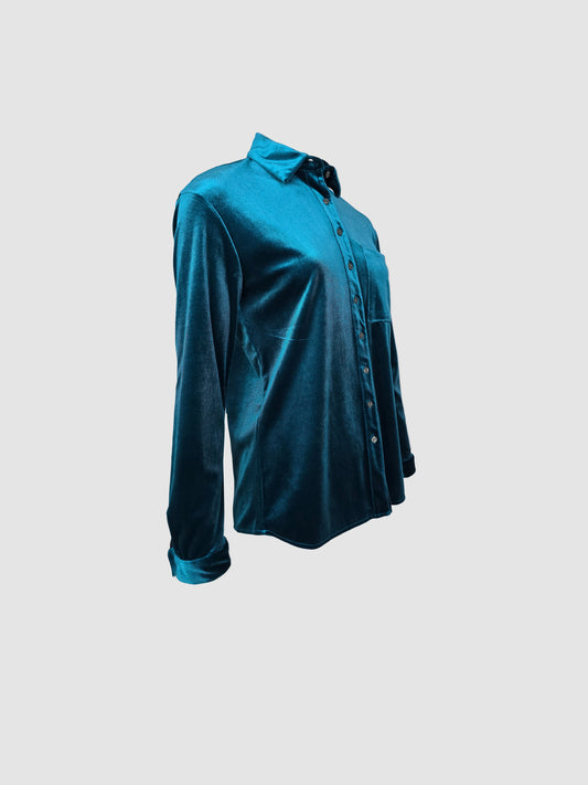 Camisa Turquesa Manga Larga de Terciopelo