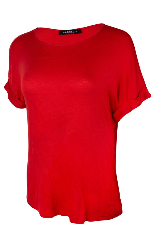 Blusa Roja Manga Corta Cuello Redondo