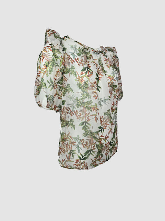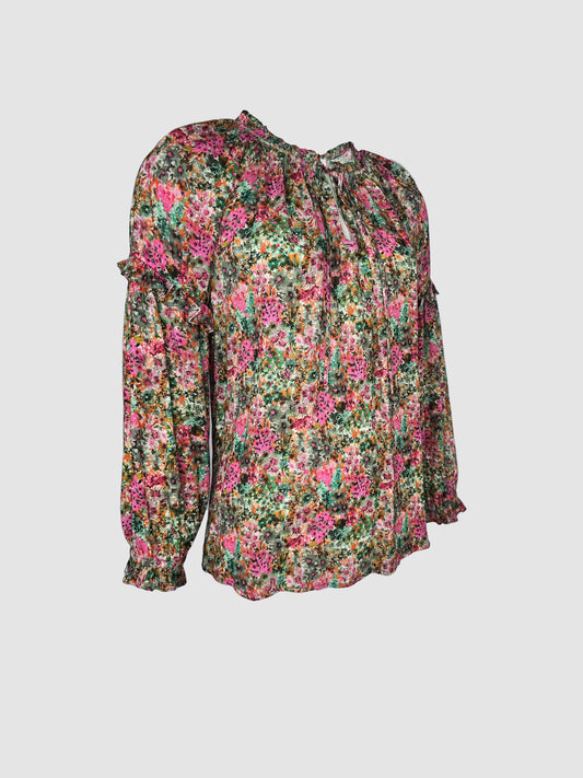 Blusa Patrón Floral Manga Larga con Escarolas