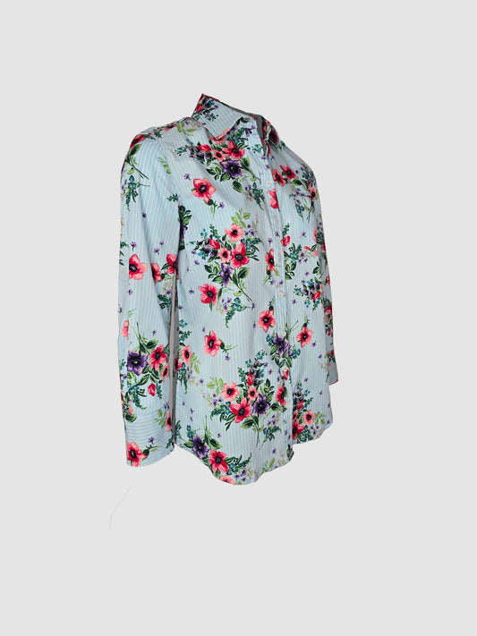 Camisa Azul Rayas Manga Larga con Flores