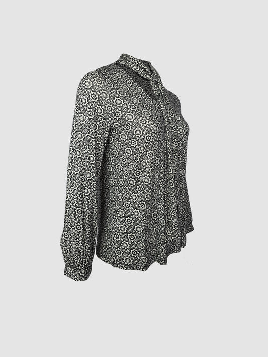Blusa con Patrón Floral en Blanco y Negro