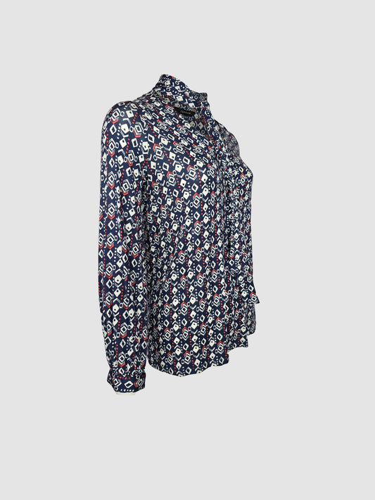Blusa Azul Rombos con Cintas Manga Larga
